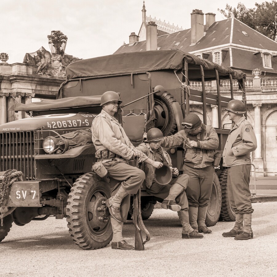 Reconstitution de la libération de Nancy avec la participation de l’association CIB Reenactor Group, spécialisée dans les reconstitutions mettant en scène les GI’s engagés dans des opérations menées en Europe.