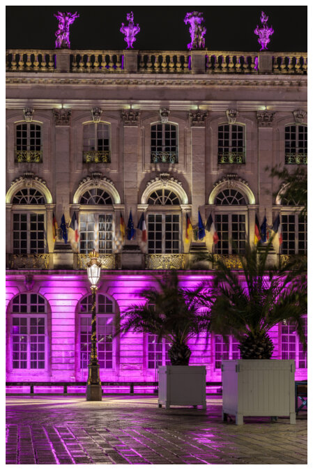 Ces photographies nocturnes ont été réalisées sur la place Stanislas et dans le jardin éphémère de Nancy, à l’occasion d’Octobre Rose.